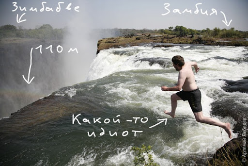 na wodospadzie Wiktorii, tuż przy samej krawędzi istnieje naturalny basen skalny